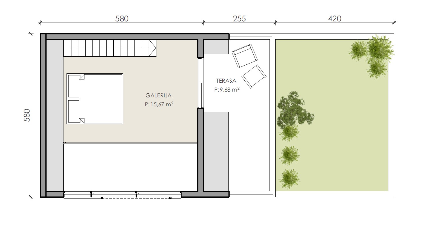 Ova moderno dizajnirana kuća nudi savršen spoj udobnosti i funkcionalnosti. S tri spavaće sobe, jednom kupaonicom, kuhinjom s blagovaonicom, udobnim dnevnim boravkom i garažom, idealna je za obiteljski život. Dvije terase proširuju životni prostor i omogućuju boravak na otvorenom tijekom cijele godine. Praktičan raspored i moderan izgled čine ovu kuću odličnim izborom za stalno stanovanje ili odmor.