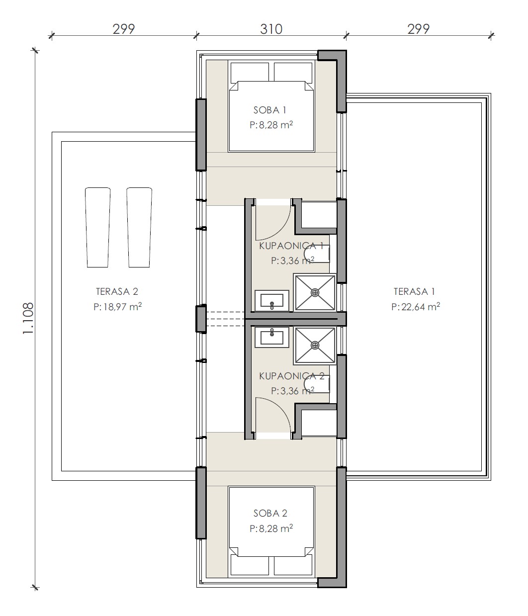 Ova kuća modernih linija i upečatljive staklene fasade nudi savršenu ravnotežu između estetike i funkcionalnosti. S dvije spavaće sobe, dvije kupaonice i dodatnim WC-om, udobna je za obitelj ili par. Prostrana kuhinja s blagovaonicom, elegantan dnevni boravak i izdvojen ured čine prostor savršenim i za život i za rad. Tri terase osiguravaju uživanje u svakom dijelu dana, dok večernja rasvjeta dodatno naglašava sofisticiranost doma. Idealna za sve koji žele živjeti moderno, s karakterom.